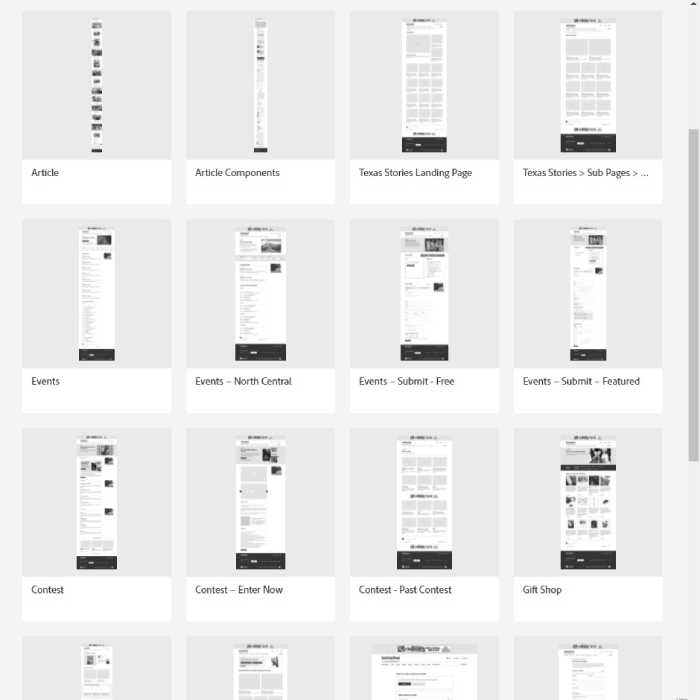 Hahn started the re-design with wireframes. Wireframes allow designers to explore the website in black and white without the distraction of color or images. For the TCP website, we knew there were several features the client wanted to keep mixed with new layouts they wanted to achieve. We also knew they wanted to add new advertising revenue streams throughout the entire site in a way they hadn’t done before. With the wireframes we focused on the primary top level pages to create a logical user flow. We collaborated with the client on content and features to make certain we were in agreement with all the bells and whistles needed.