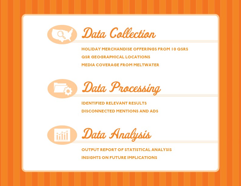 Hahn’s advanced team of marketing and research experts and senior data analysts performed an in-depth study of all holiday merchandise media coverage for Whataburger and nine top competitors over a two-month period. Considering the offerings and footprint of each QSR, Hahn collected and analyzed relevant coverage, general quantitative competitor information, created formulaic queries, calculated metrics and evaluated data to create a distilled report and implications for future similar initiatives.